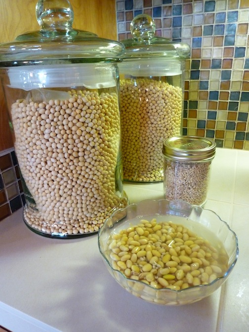 | Soak beans and barley for 6-8 hours (never more than 12). By the way, that's what 13 pounds of soy beans looks like! |