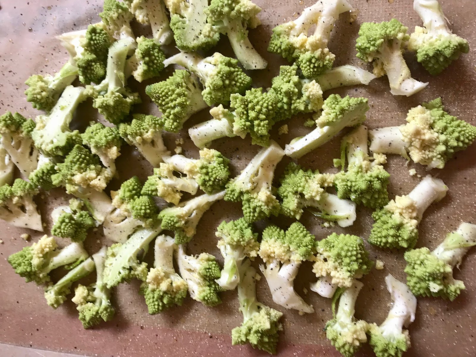 Break up the Romanesco into small pieces. Cut the larger pieces in half.